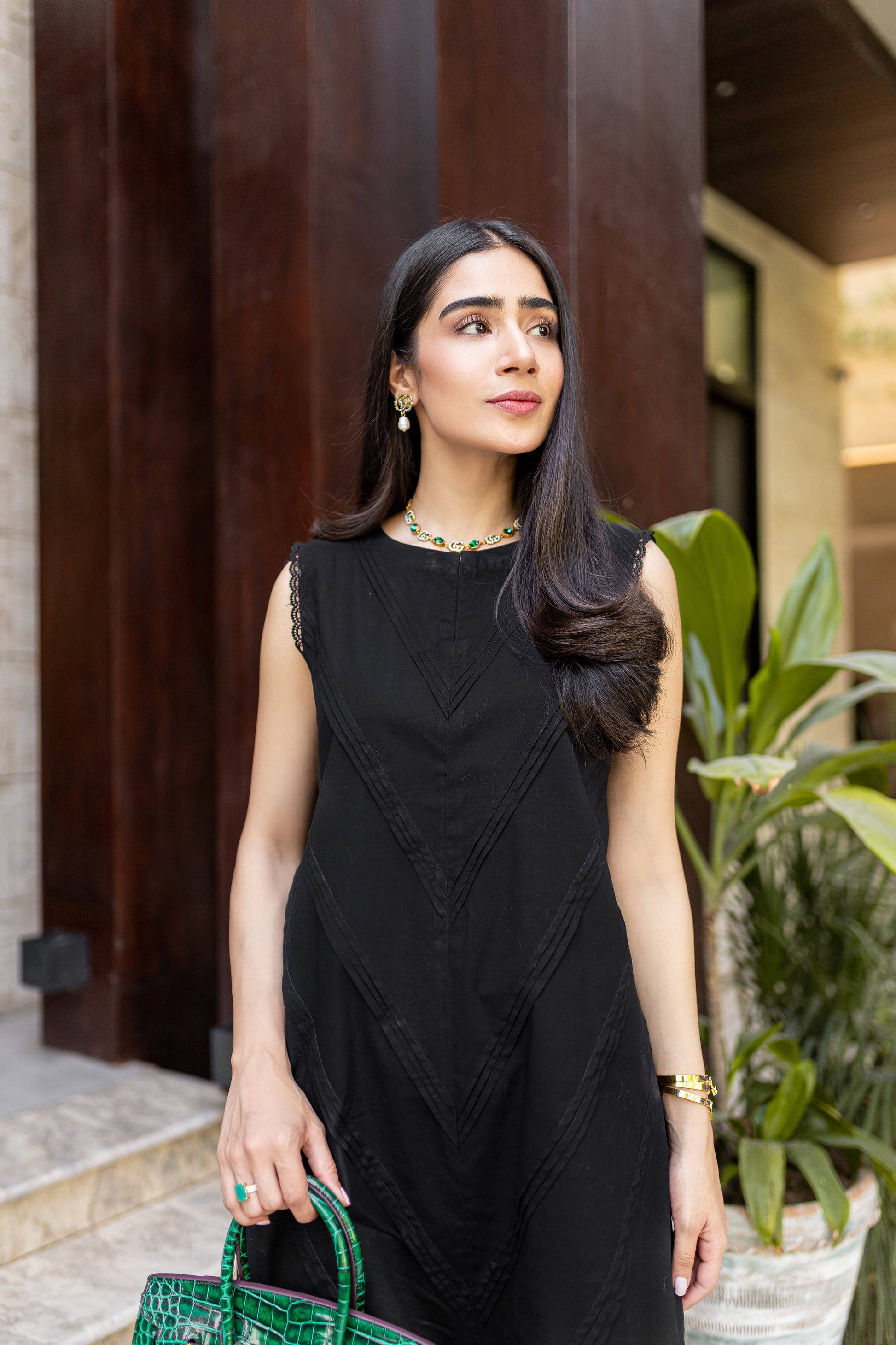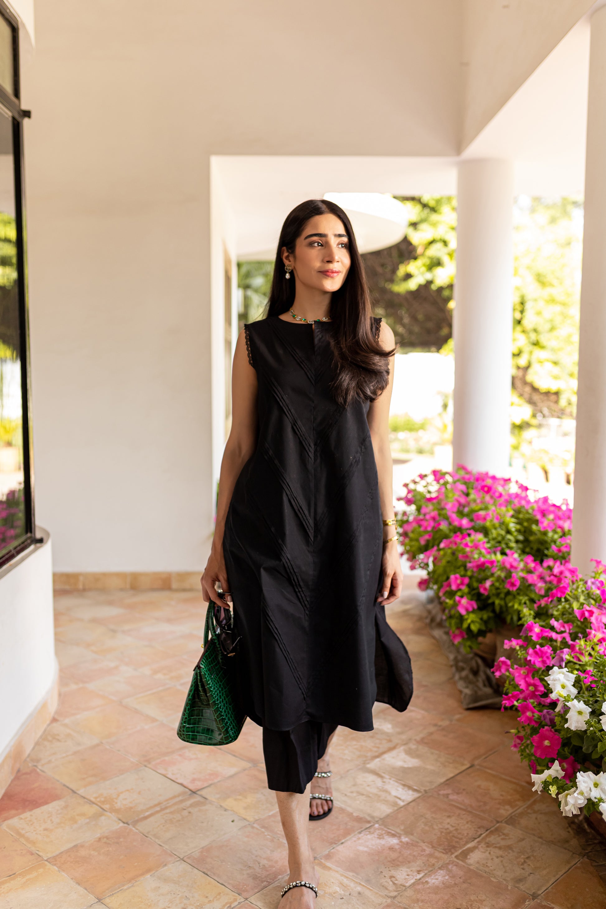 5-7 daysA black linen shirt stitched in loose cut with diagonal pleat detail, paired perfectly with wide legged crops.